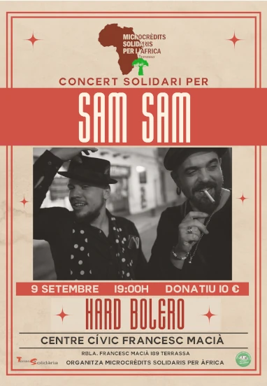 Microcrèdits solidaris per l'Àfrica organitzem una actuació musical amb el duo HARD BOLERO el dia 9 de setembre a les 19 hores al centre cívic Francesc Macià Terrassa.